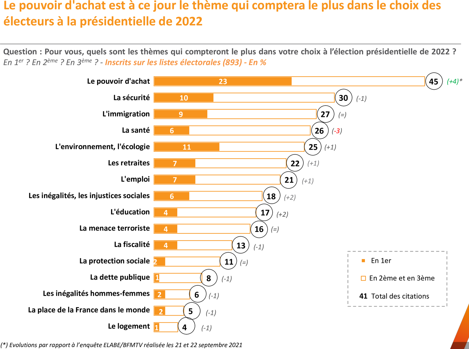 Depuis fin 2021, retour de l’inflation → pouvoir d’achat redevient la préoccupation n°1, par exemple au moment de l’élection présidentielle de 2022, des élections européennes du 9 juin 2024, et des législatives anticipées des 30 juin et 7 juillet 2024.