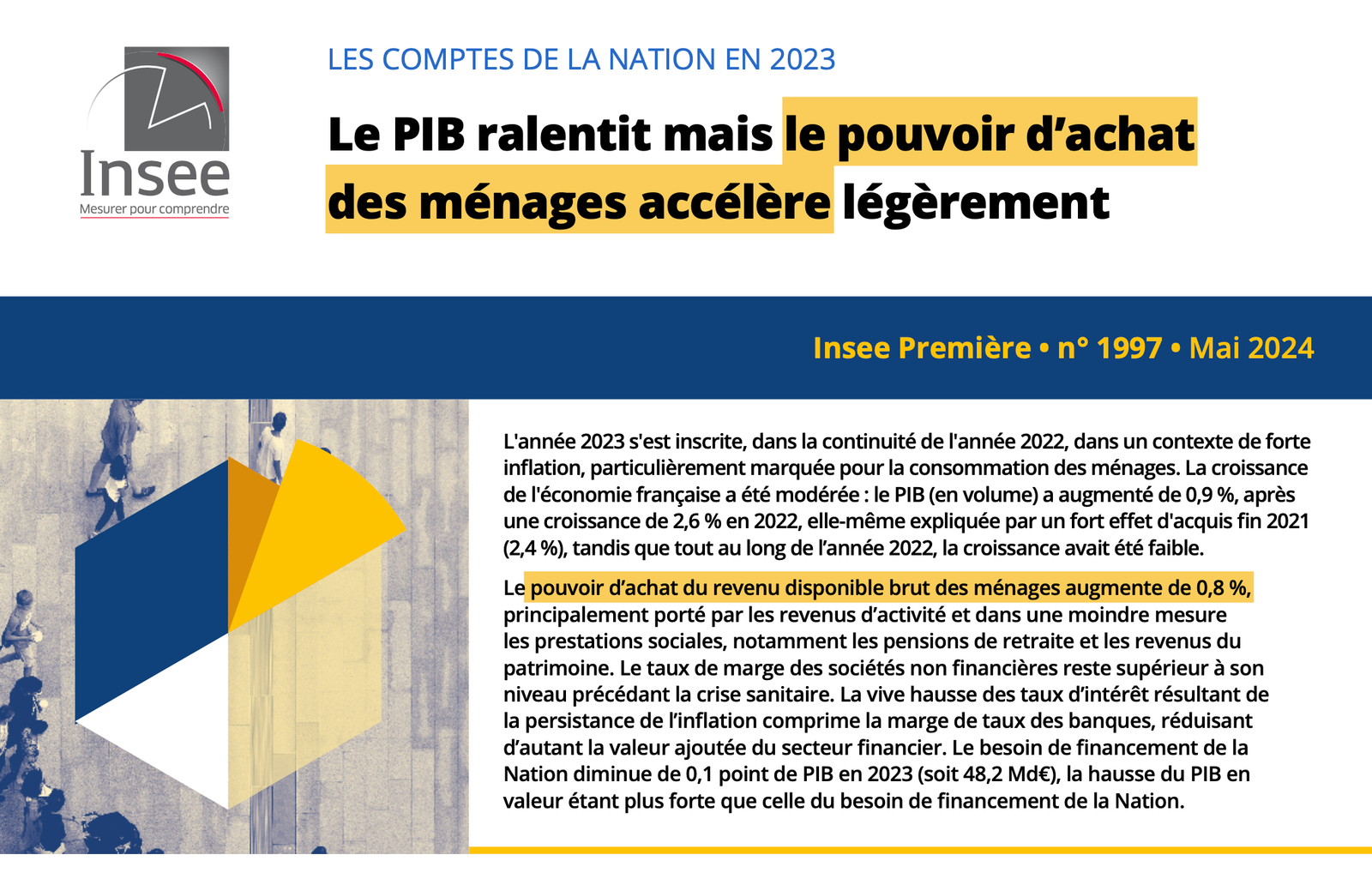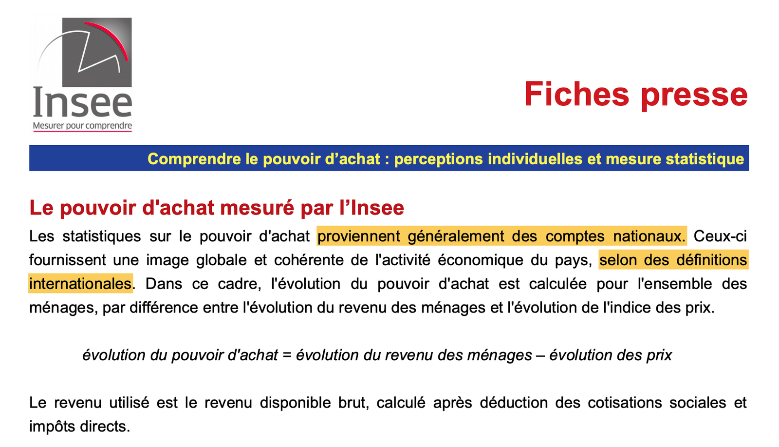 En 2019, l’Insee publie encore, dans un dossier de presse : « Les statistiques sur le pouvoir d’achat proviennent généralement des comptes nationaux. »