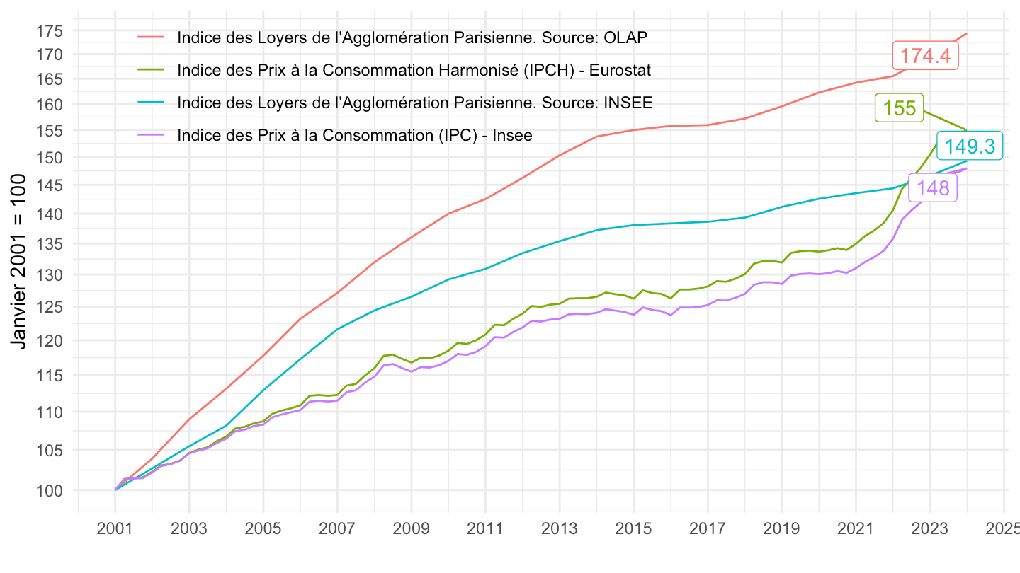 Idéalement : créer un IPCH-logement, incluant les services de logement des propriétaires occupants (Geerolf (2022)). En corrigeant le partage volume / prix sur les loyers, et les biais de l’enquête Loyers et Charges: absence des logements meublés, insuffisante prise en compte de la hausse de loyer entre 2 locataires, etc.